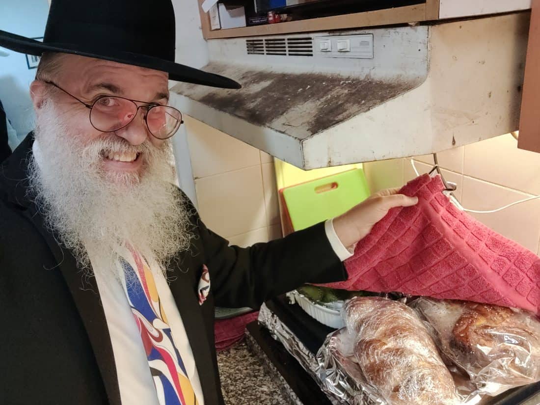 Checking on the food on the hot plate