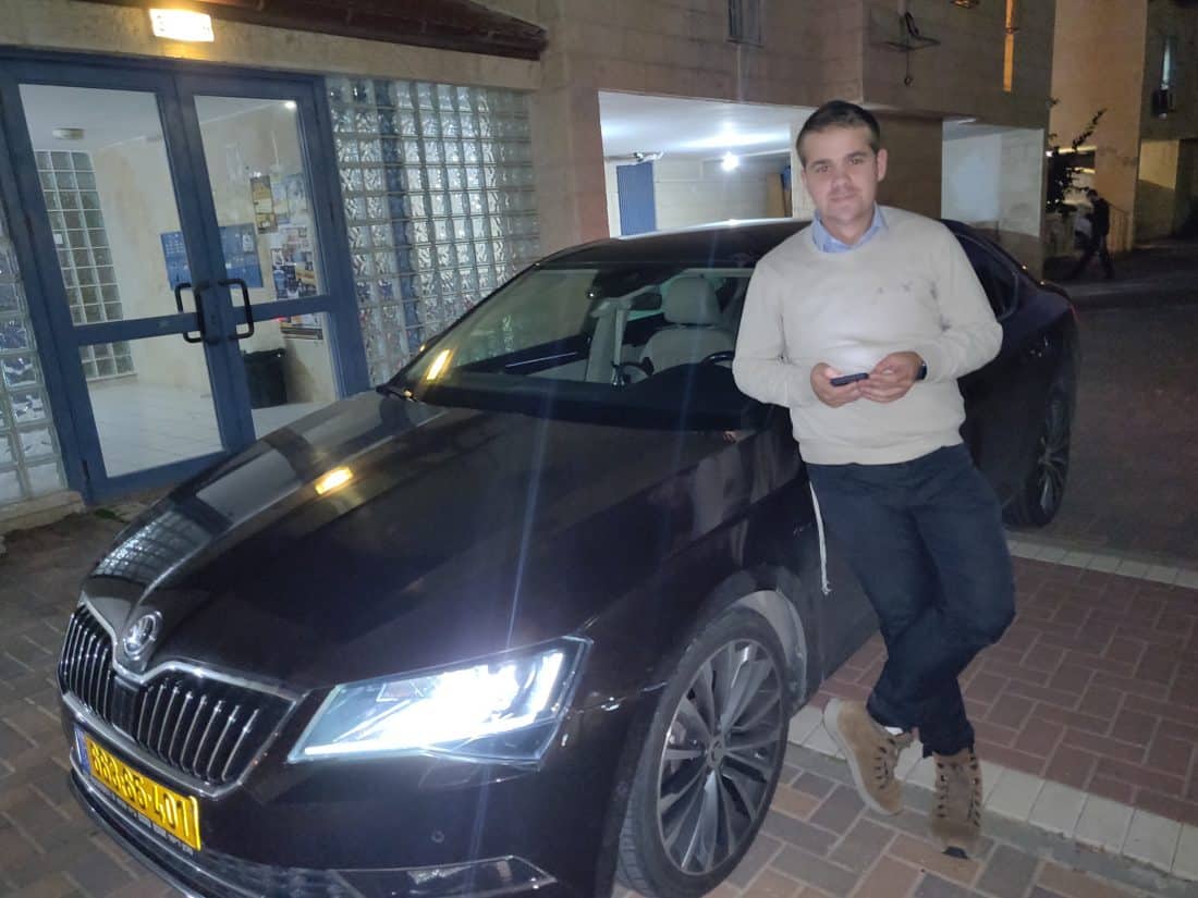 Ns standing next to his SCODA black car