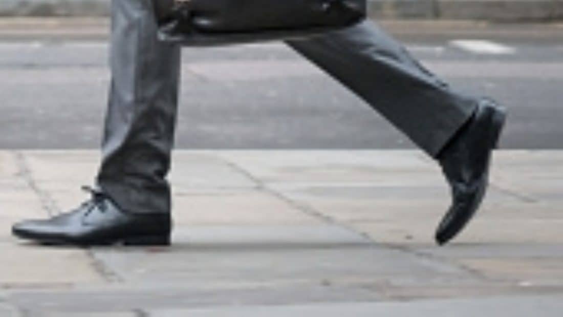 Successful senior business man walking down the street carrying a briefcase